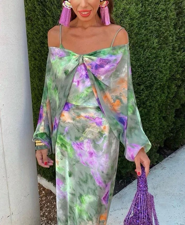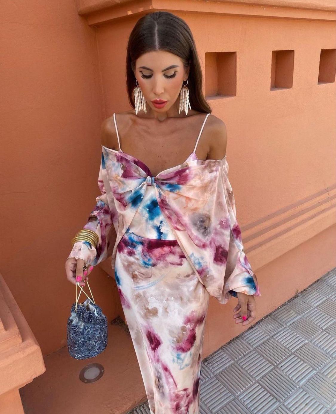 🎨 Il vestito Suave è un sogno ad occhi aperti! Realizzato in un tessuto fluido e leggerissimo, avvolge la silhouette con una stampa artistica e delicata 🌟. Il drappeggio frontale e le bretelline sottili aggiungono un tocco di romanticismo e freschezza ✨. Perfetto per occasioni estive, aperitivi chic o eventi speciali sotto il sole ☀️. Da abbinare a borse gioiello e gioielli importanti per un look unico e indimenticabile 💫